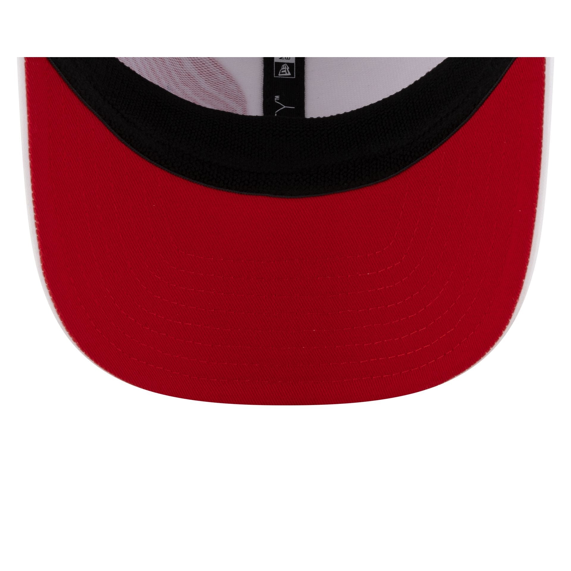 The 2025 Japan Race Special BWT Alpine F1 Team 9SEVENTY Stretch-Snap Cap features an embroidered BWT Alpine F1 Team logo at the front panels with Japan Flag inspired crown. Additional details include a BWT logo at the right-wear side, a red undervisor, and a snapback closure at the rear.