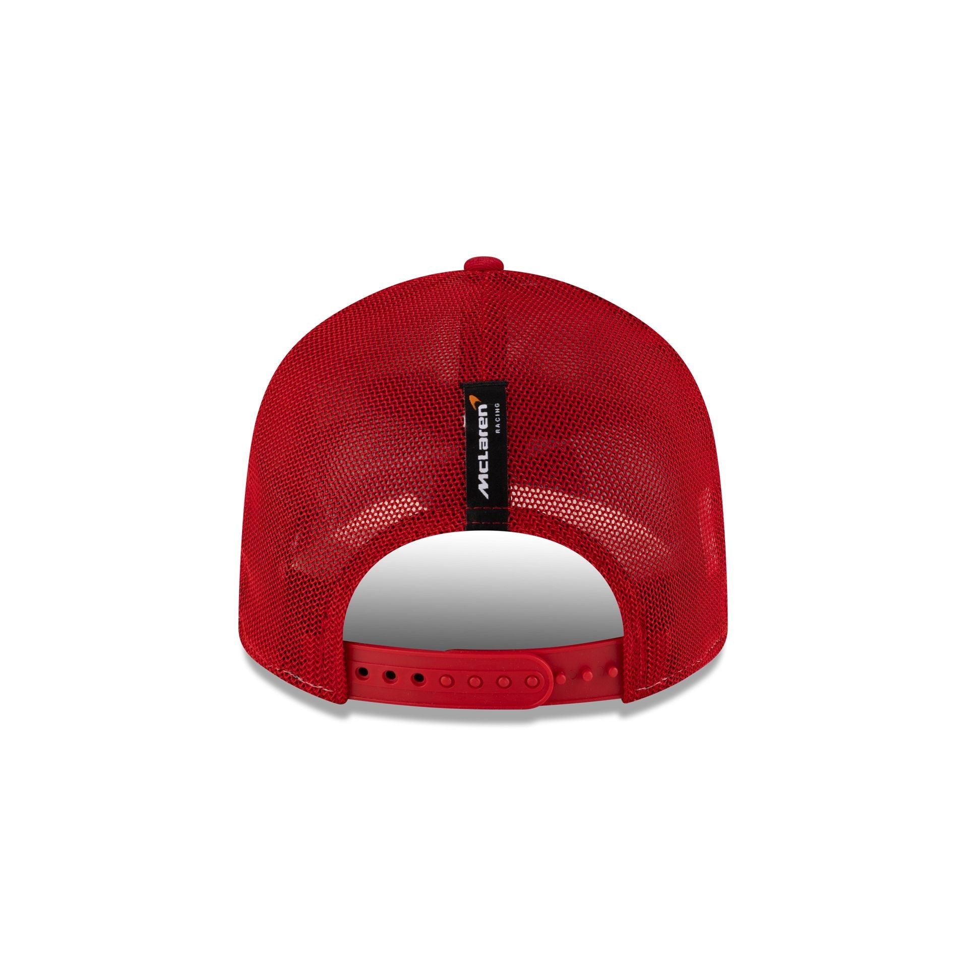 The Arrow McLaren IndyCar Team Christian Lundgaard 9FIFTY Trucker features an embroidered Arrow McLaren IndyCar Team wordmark at the front panels with a matching woven team tag at the right-wear side. Additional details include a woven McLaren Racing tag above a snapback closure at the rear with the driver's number at the red undervisor.