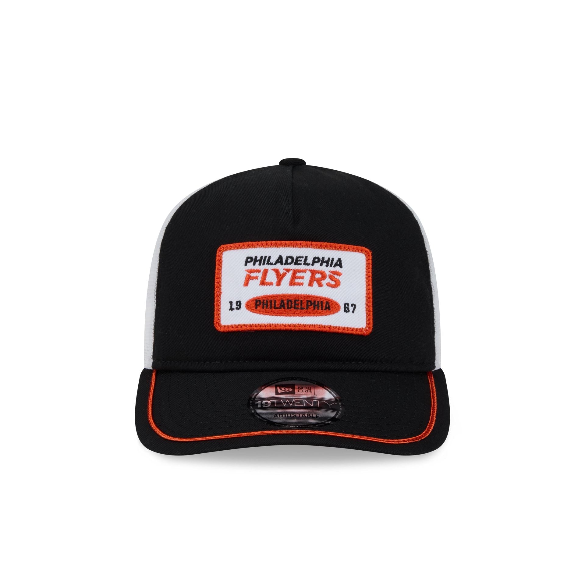 The Philadelphia Flyers Patch 19TWENTY Trucker features an embroidered Flyers patch at the front panels with an adjustable snapback closure at a mesh rear.